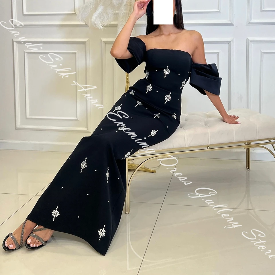 ג'רזי שרוול מנותק סטרפלס אורך רצפה שמלת ערב ישר קריסטל צבע איכותי בצבע סעודיה 2024